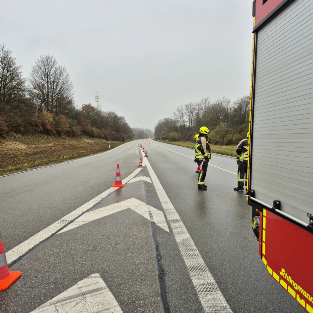Auf der B12 ereignete sich ein schwerer Verkehrsunfall. Wir sperrten hierfür die Straße von Richtung Simbach aus.