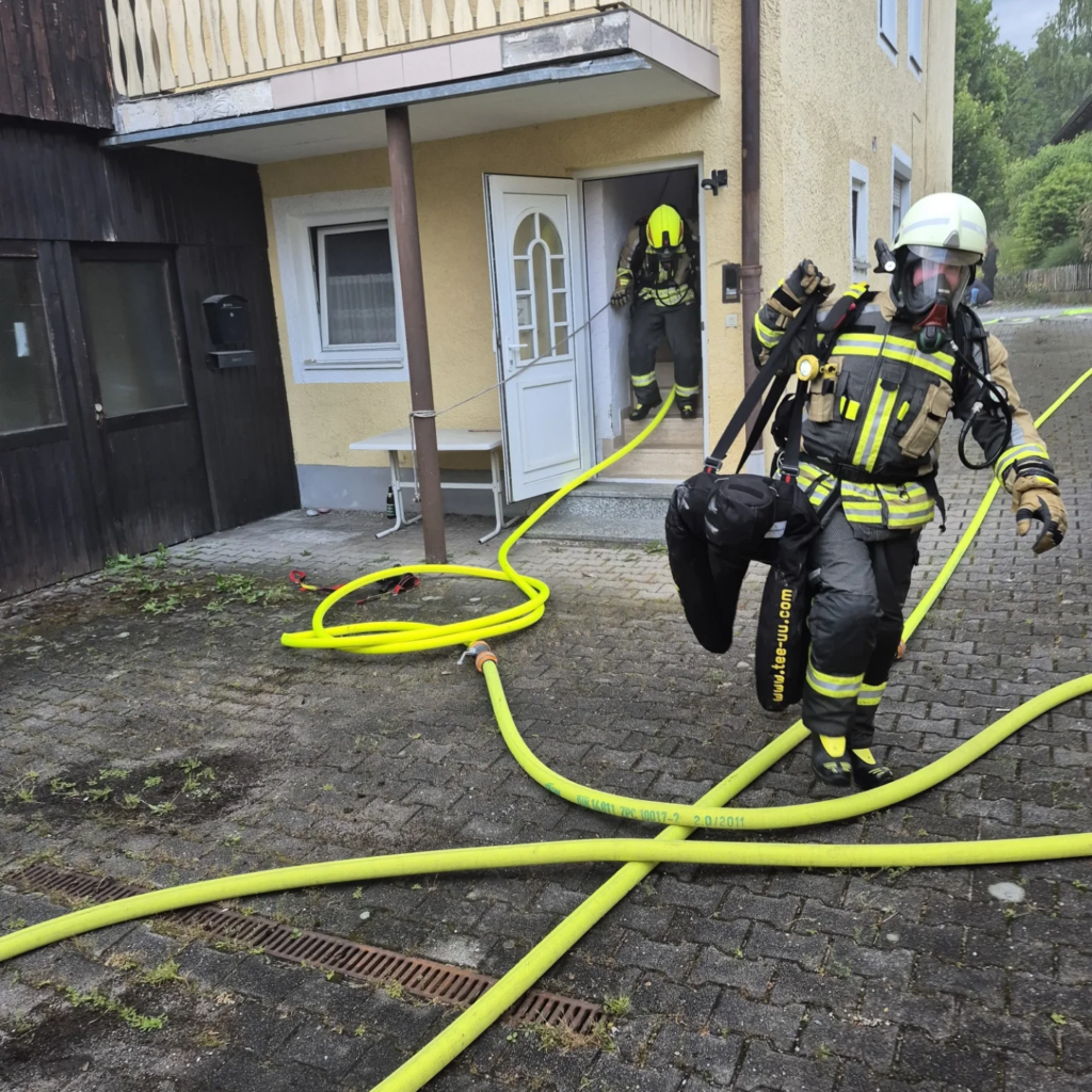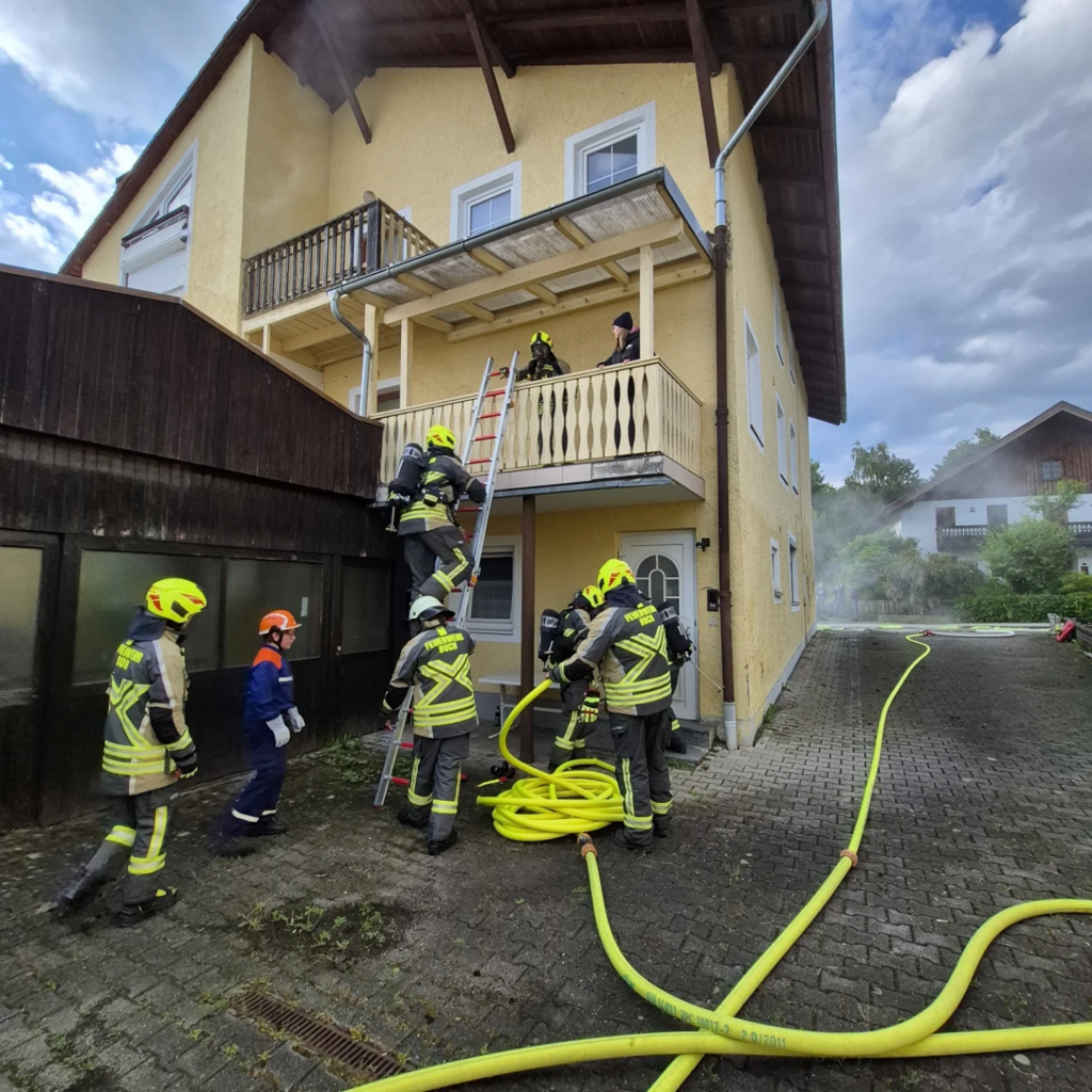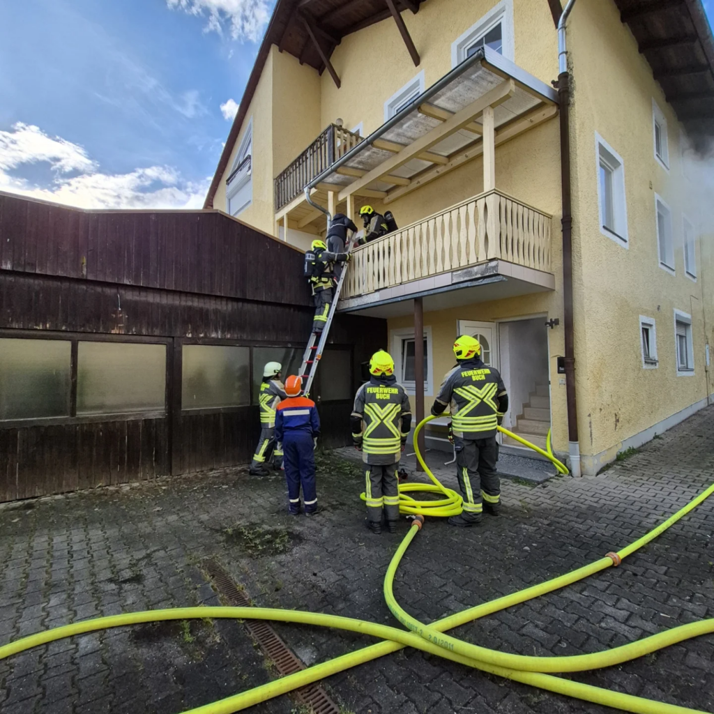 Angenommenes Szenario war ein Brand in einem ehemaligem Wohn und Geschäftshaus, bei welchem insgesamt 4 Personen gerettet werden mussten. Zwei davon waren im Gebäude vermisst und mussten durch die Angriffstrupps im Inneren des Gebäudes gesucht werden. Die anderen Beiden wurden durch Trupps aus Stammham und Buch von den beiden Balkonen gerettet. Erschwerend kam hinzu, dass die FFW Marktl kurzfristig zu einem Realeinsatz ausrücken musste, wodurch die eigentlich für 3 Feuerwehren geplante Übung durch deutlich weniger Kräfte abgearbeitet werden musste.